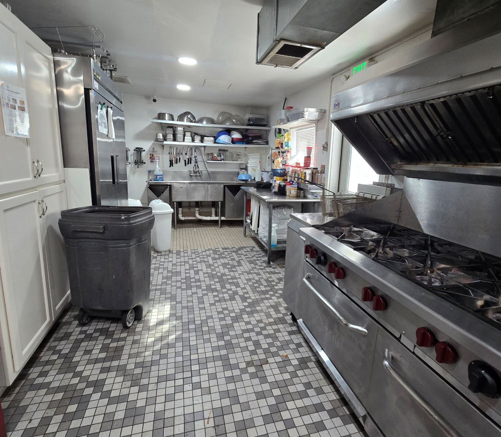Our kitchen is equipped with commercial grade appliances throughout. We have a huge commercial refrigerator and freezer, a Vulcan multi burner stove top and double ovens.